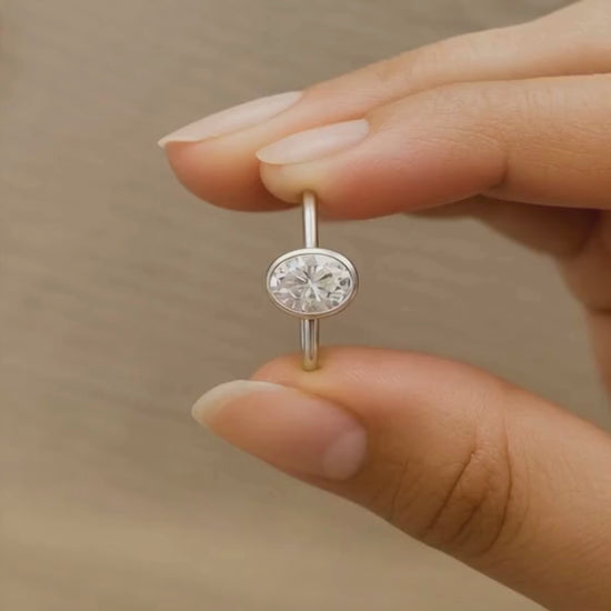 Oval Cut Moissanite Diamond Solitaire Ring For Her is crafted for women who love elegant and timeless jewelry. This ring features a dazzling 1.00 Carat oval cut moissanite diamond, bezel set for a smooth, modern finish. The stone displays exceptional brilliance with F+ color, VVS+ clarity, excellent polish, and perfect symmetry giving it a radiant sparkle from every angle.